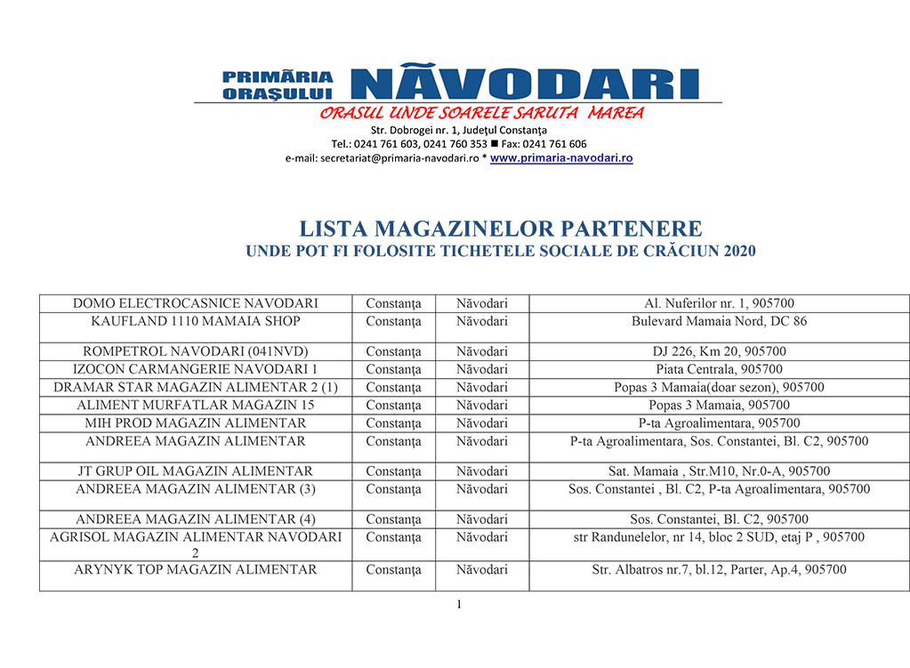 Vă prezentăm mai jos lista magazinelor partenere unde pot fi folosite tichetele sociale de Crăciun 2020.