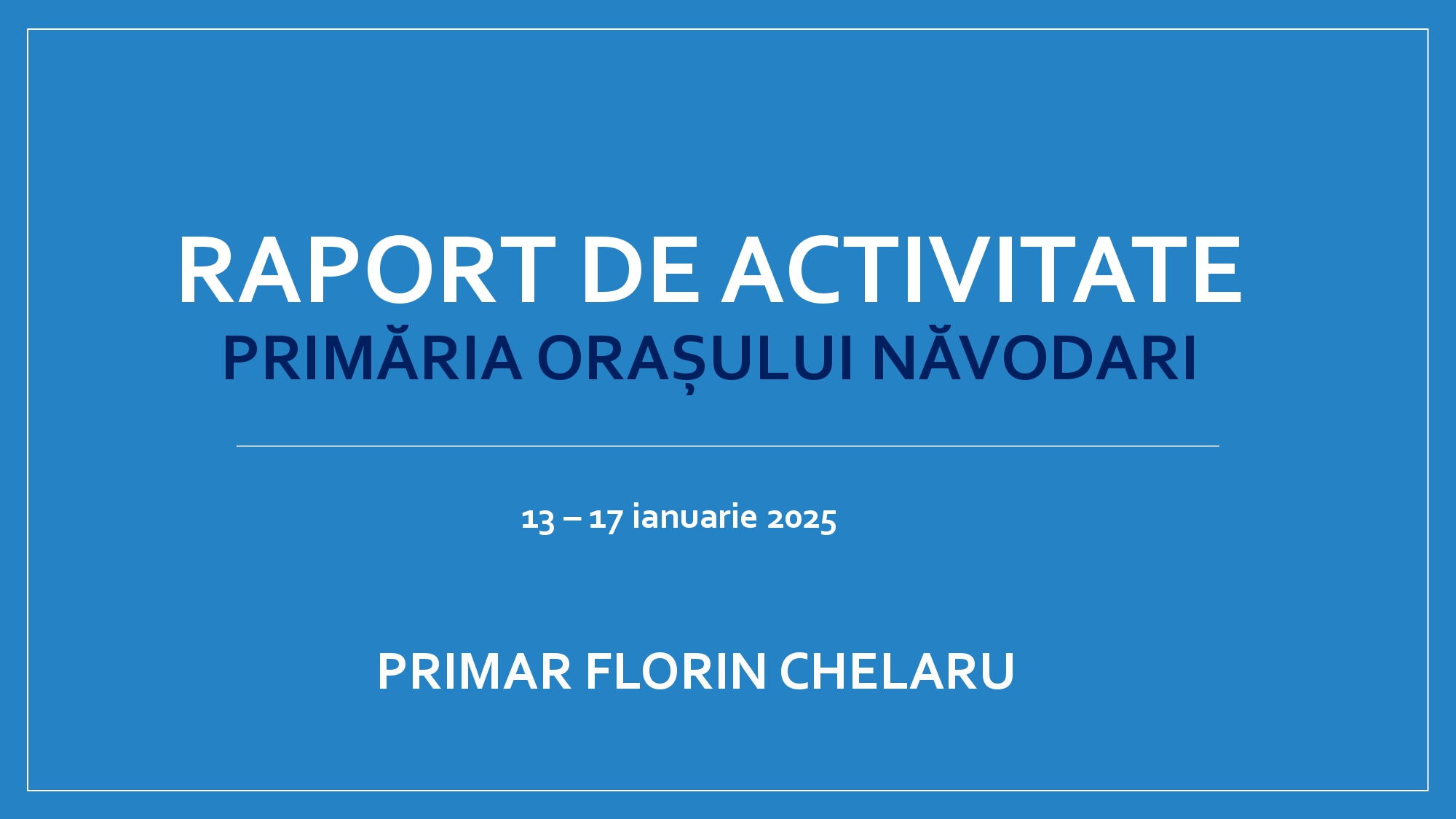Primăria NăvodariRapoarte Raport săptămânal de activitate Primăria Orașului Năvodari (13-17 ianuarie 2025) De către PrimariaNavodari - 21 ianuarie, 2025 0 901 FacebookTwitterPinterestWhatsApp Raport saptamanal de activitate Primaria Orasului Navodari (13-17 ianuarie 2025)